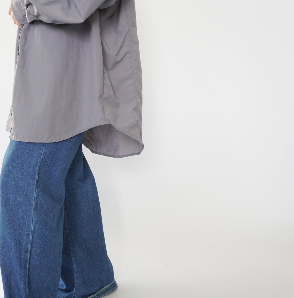 両袖内側にベルトがあり、捲ってボタンで止めることができます
