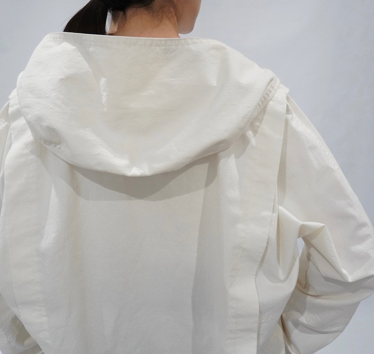 フードは造りが小さいデザインの為、実用向きではありません。首元のボタンを留め形を作って襟の様にアレンジして着用しても良さそうです(画像をご確認ください)