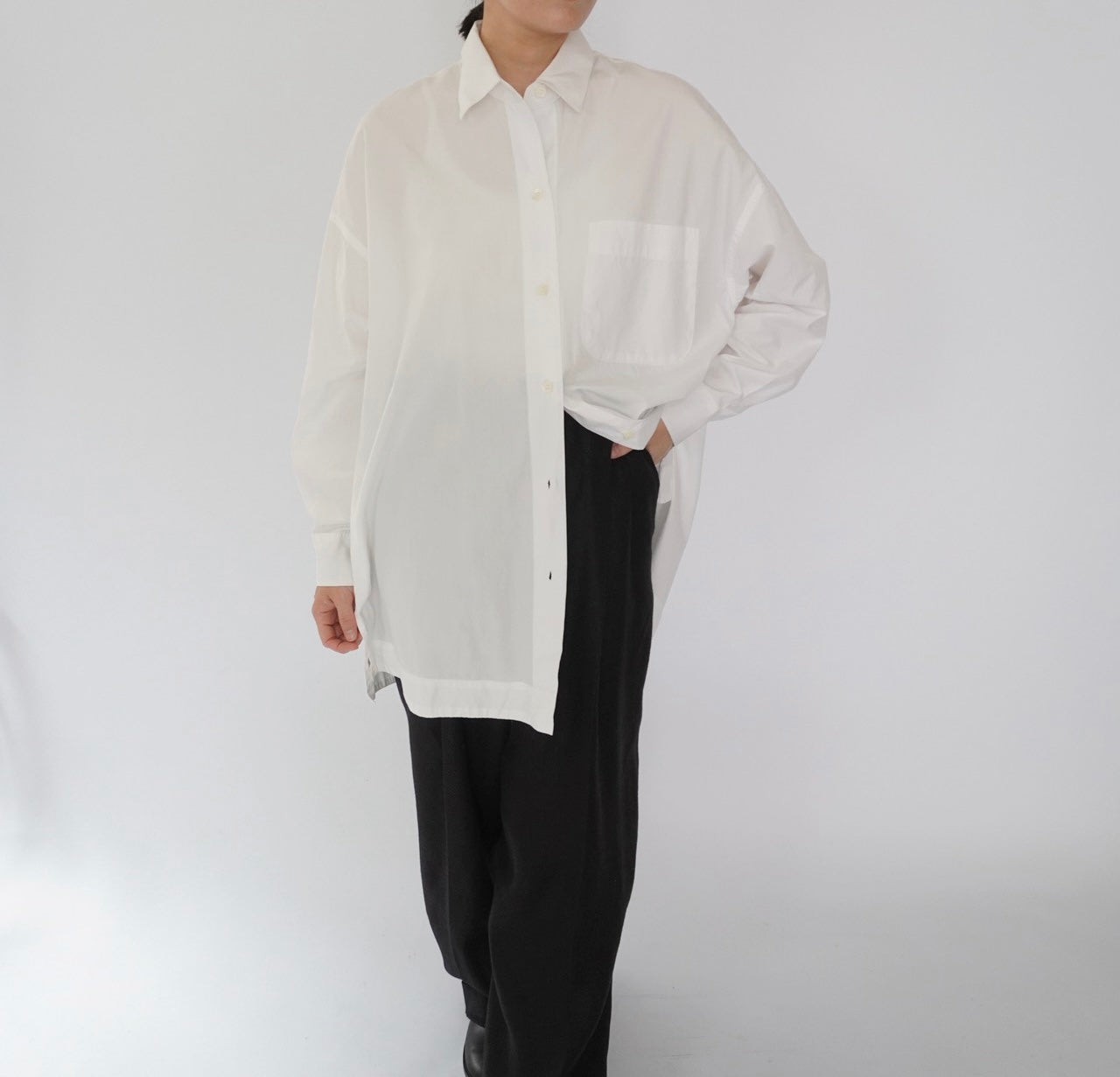 オフショルダー、両サイドスリット、着丈長さあるデザイン