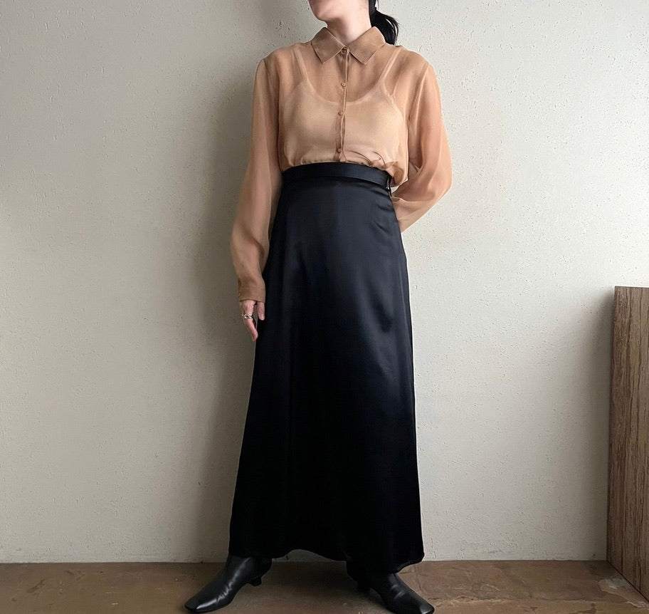 90s Black Satin Skirt Made in USA