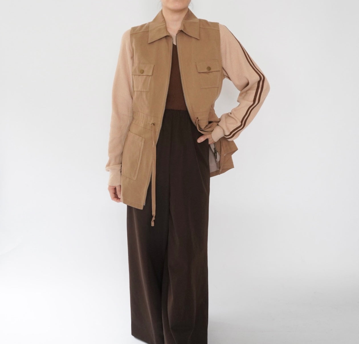 ウエストにヒモが入っており絞りの調整可能