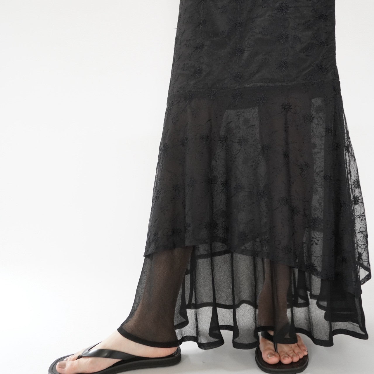 胸部分から約71cmまで裏地あり、足元は透け感あります(画像をご確認ください)