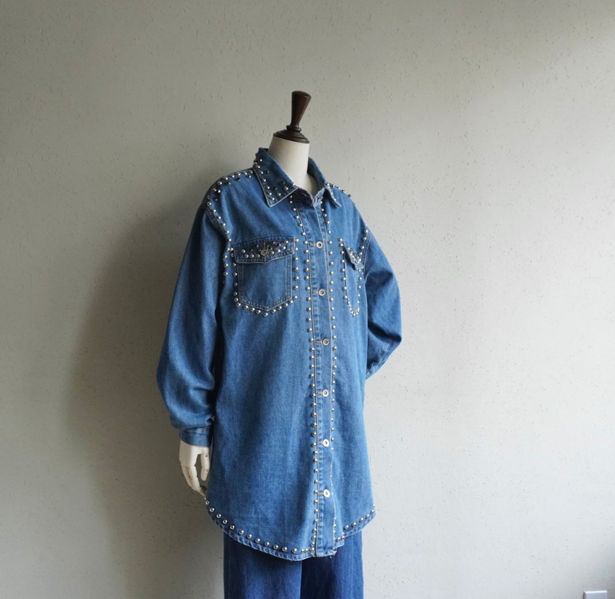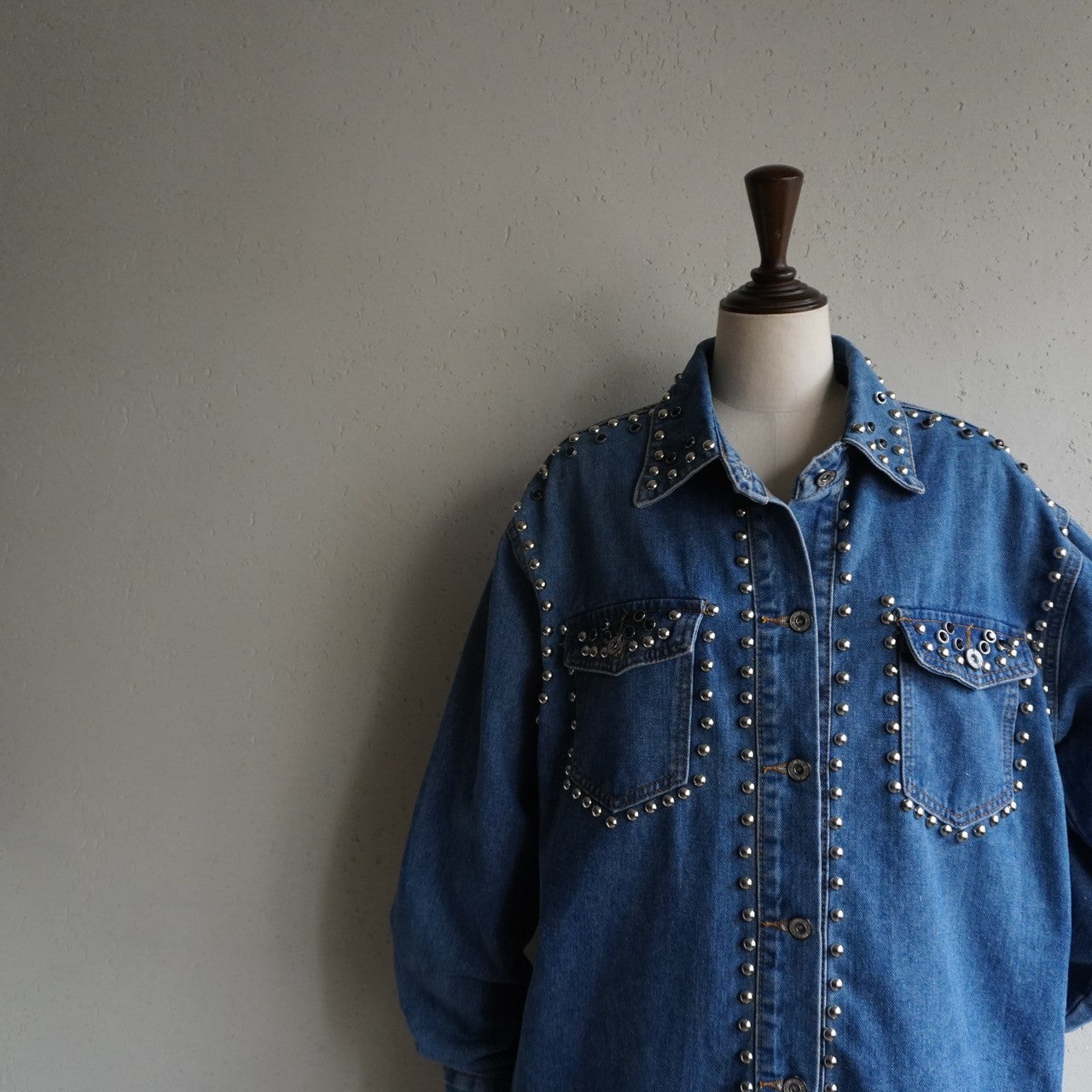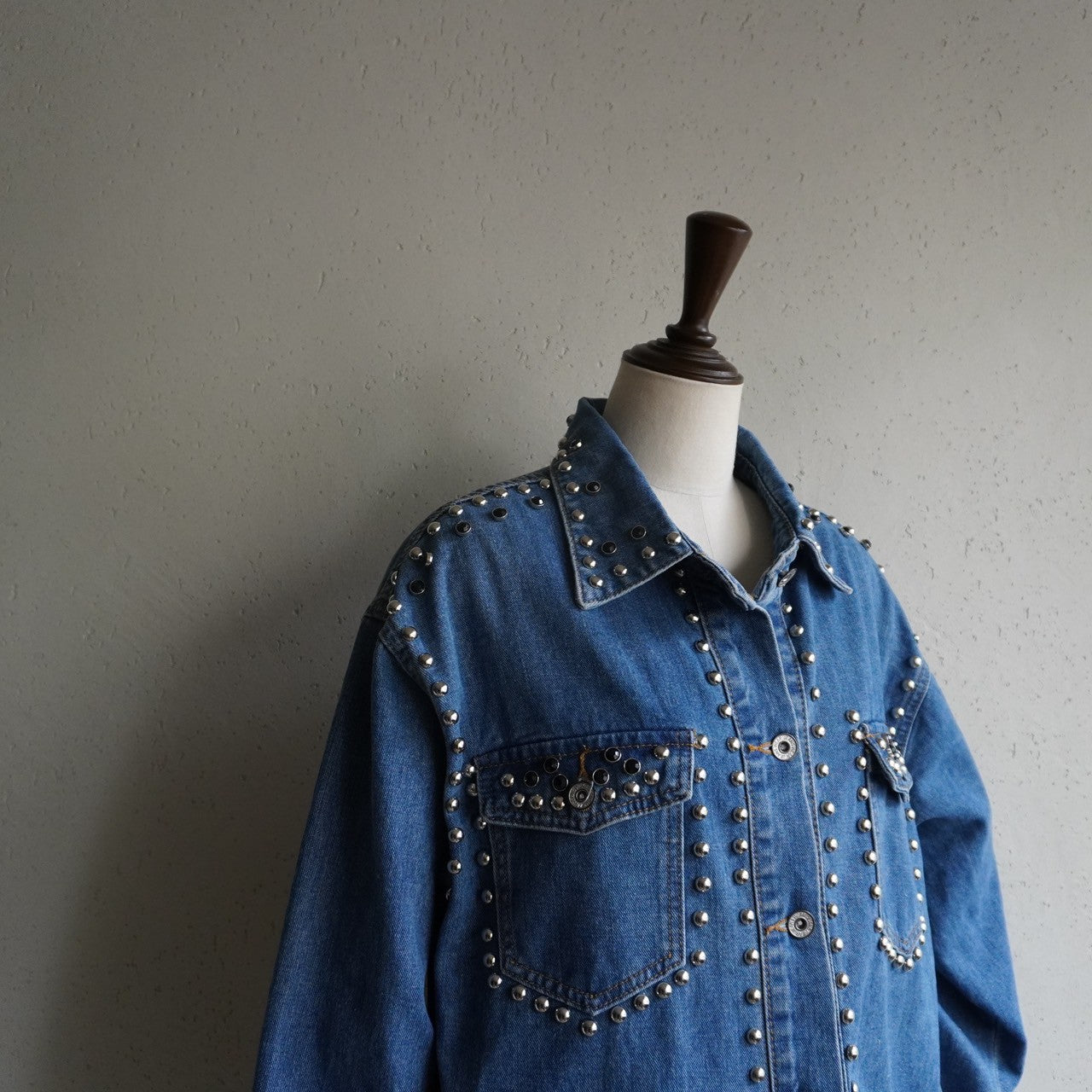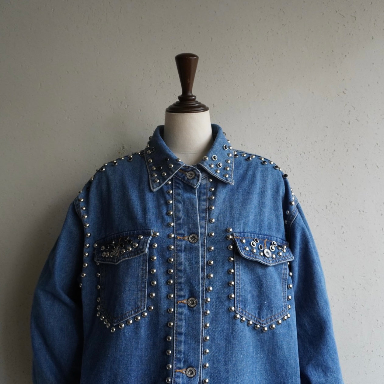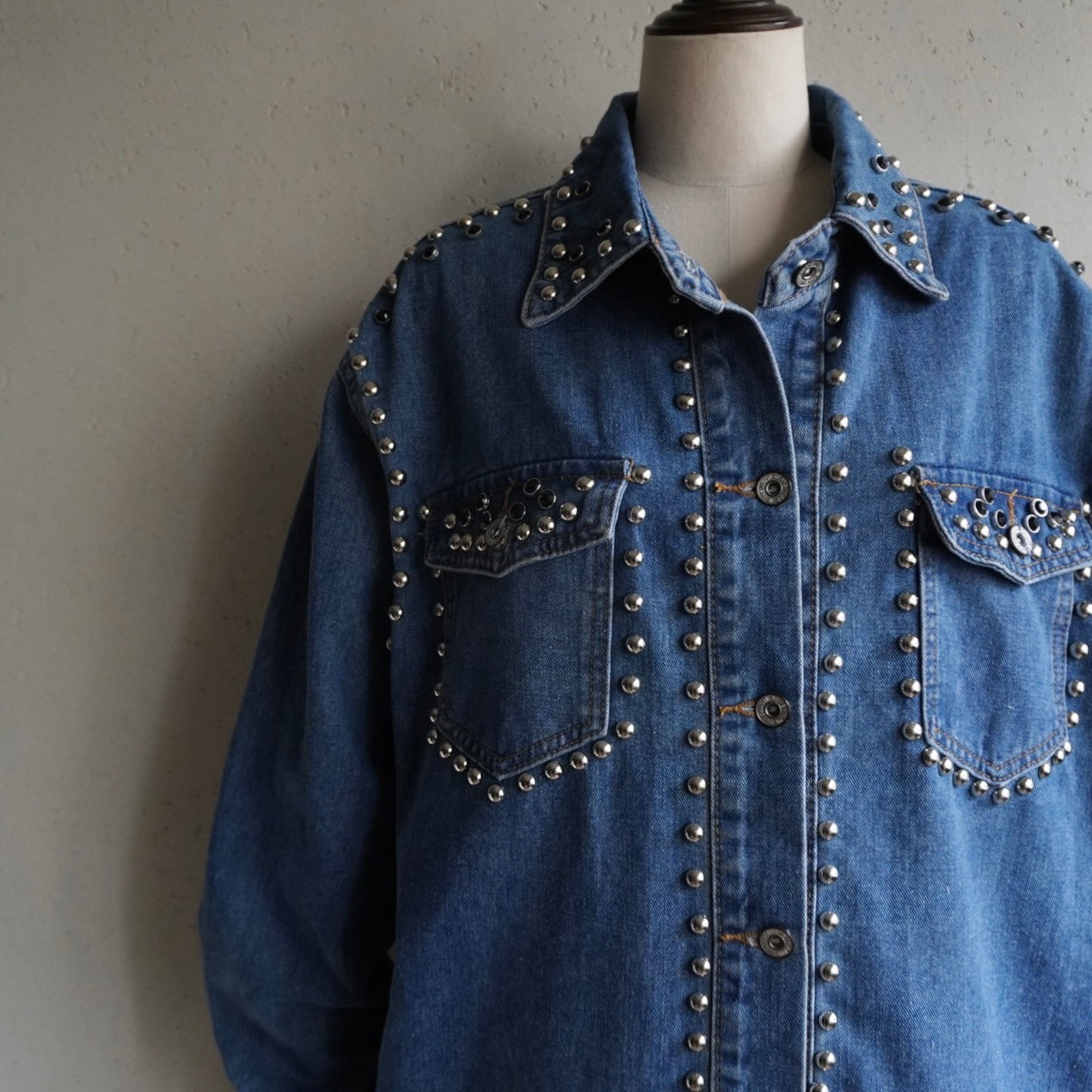 90s EURO Studs Design Denim Jacket,Shirt