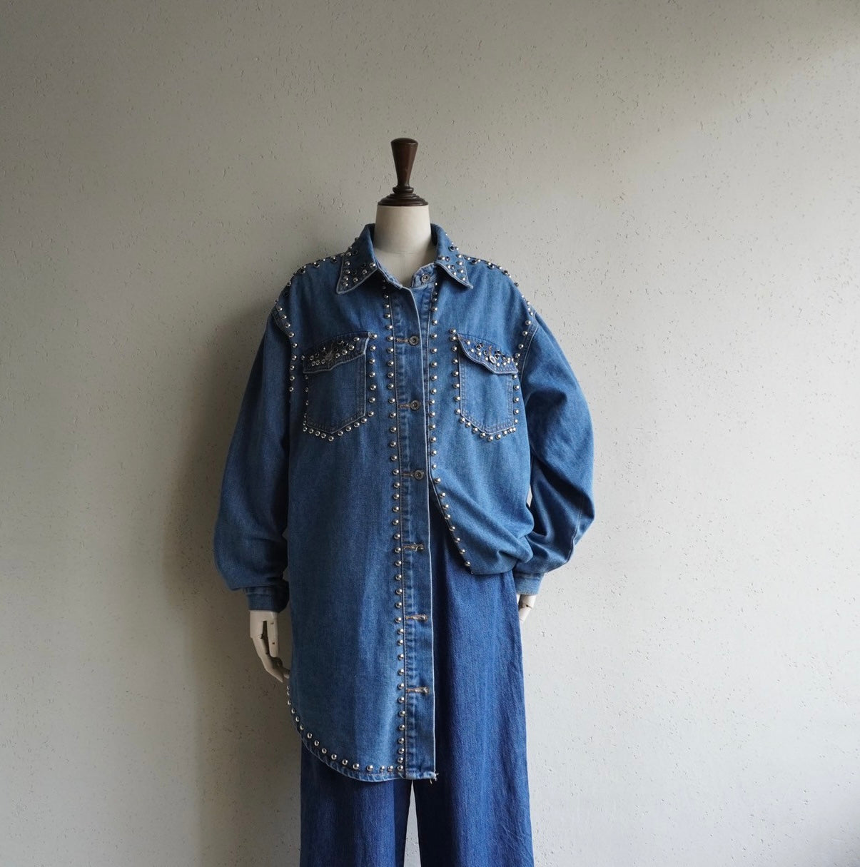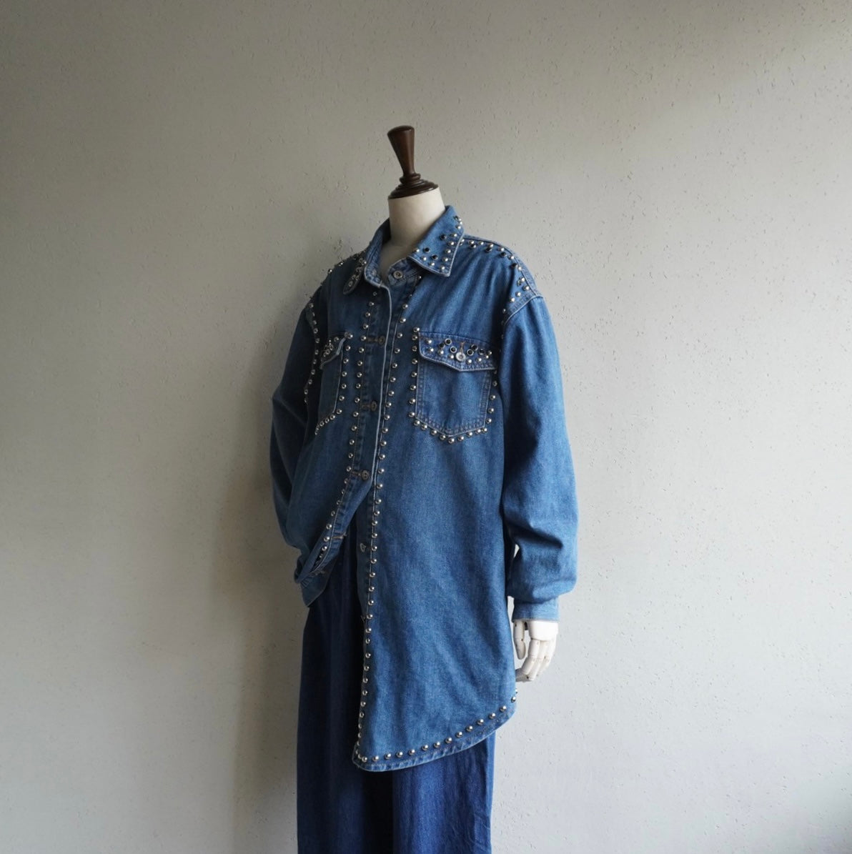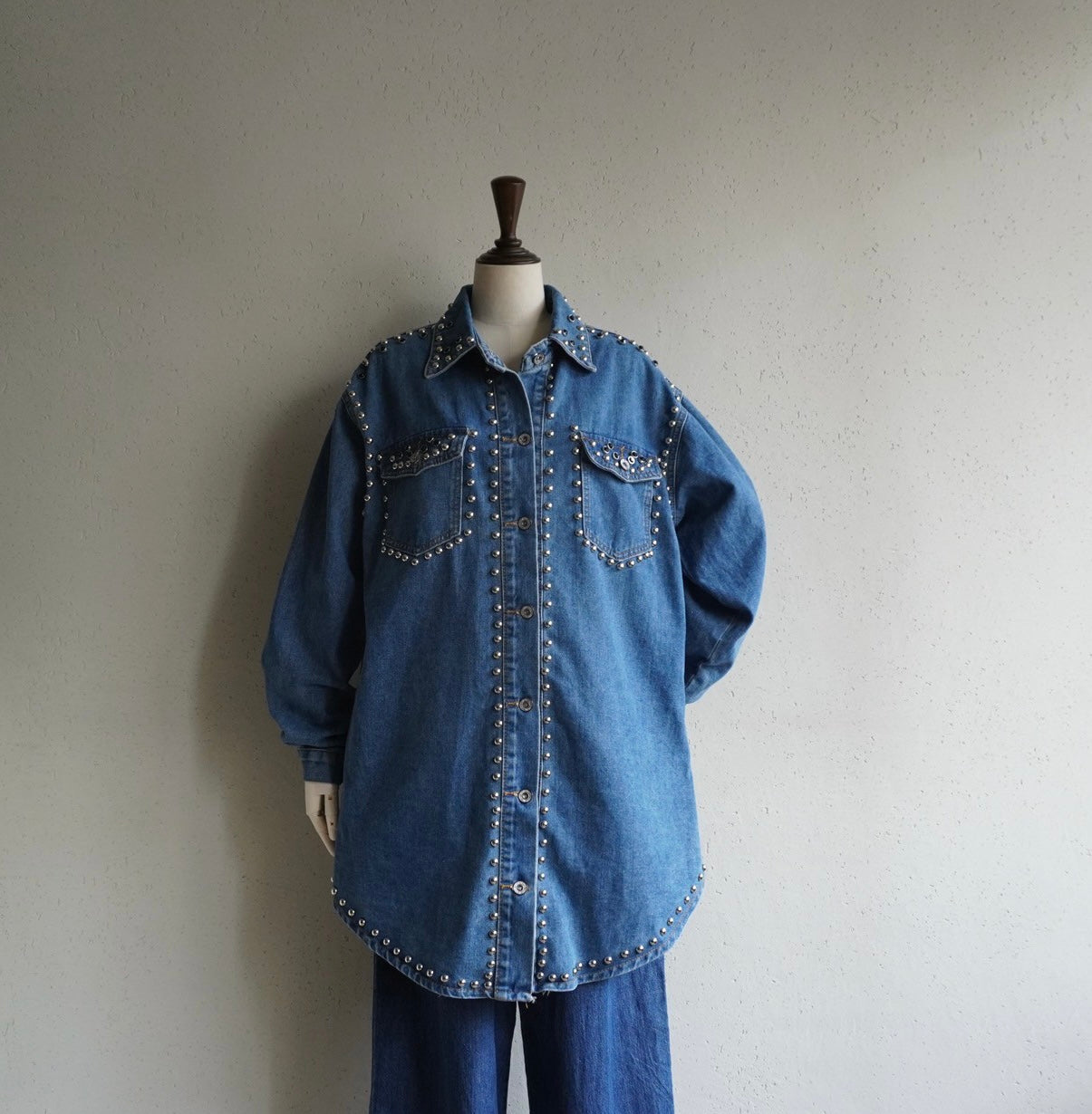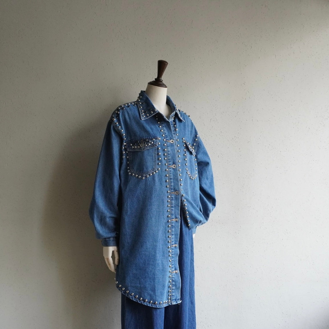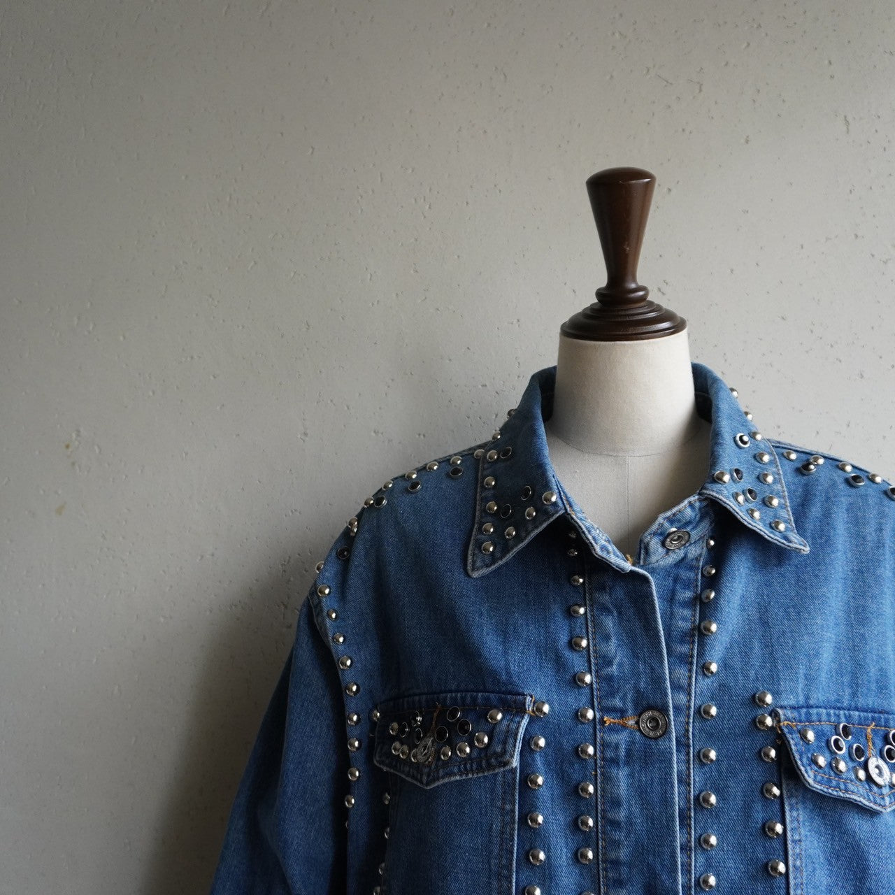 90s EURO Studs Design Denim Jacket,Shirt