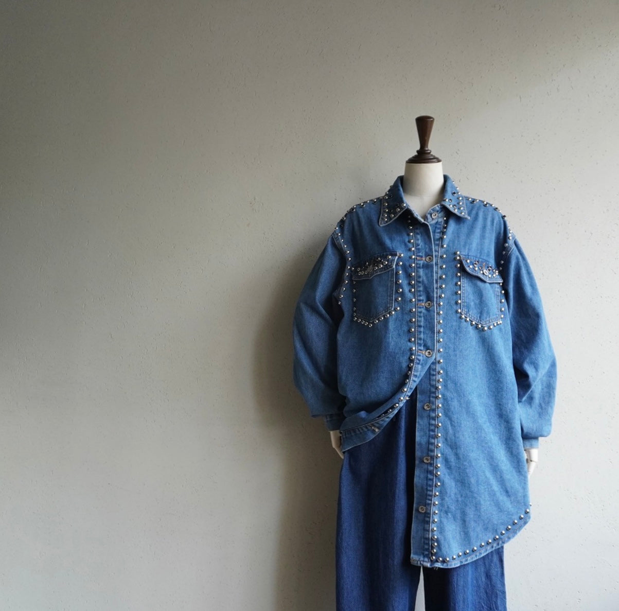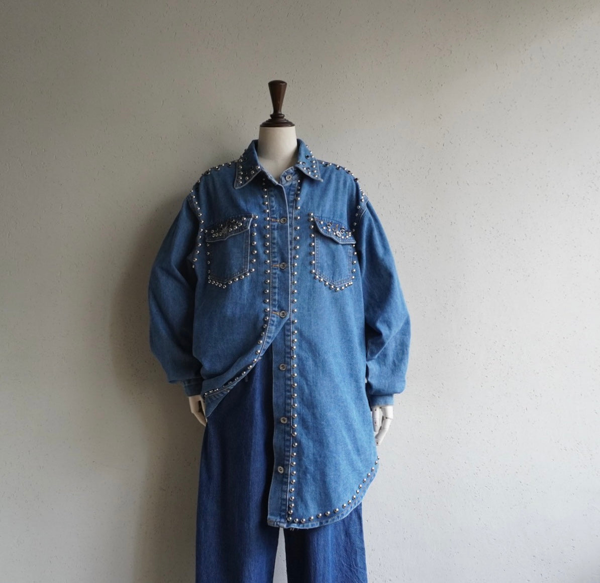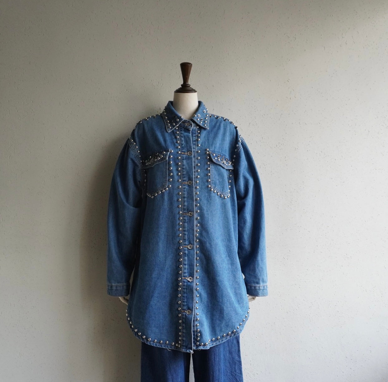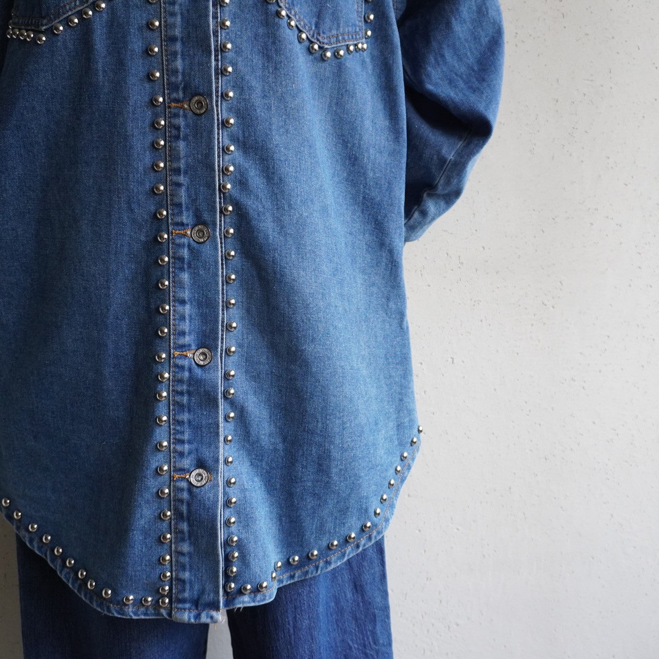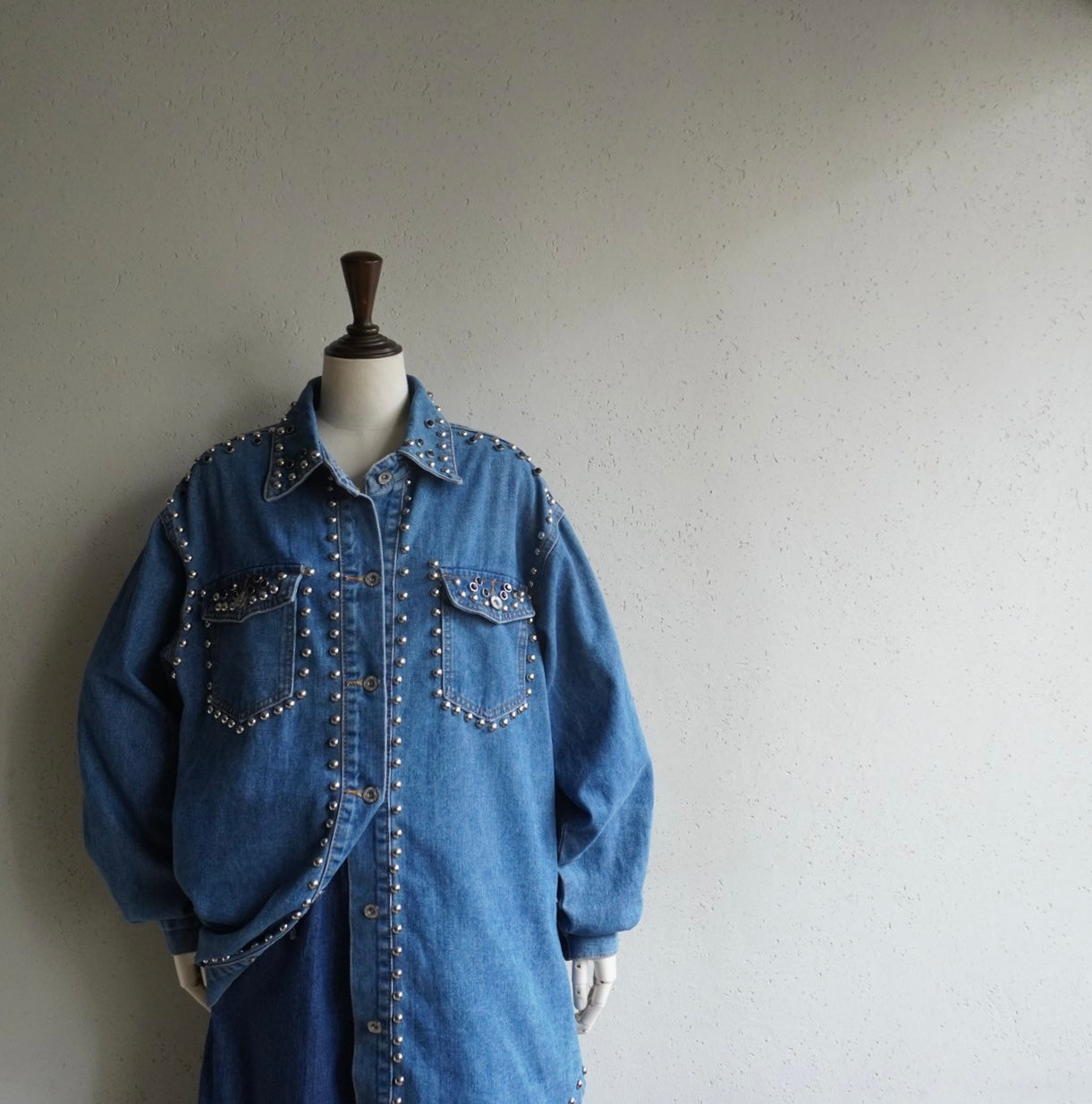 90s EURO Studs Design Denim Jacket,Shirt