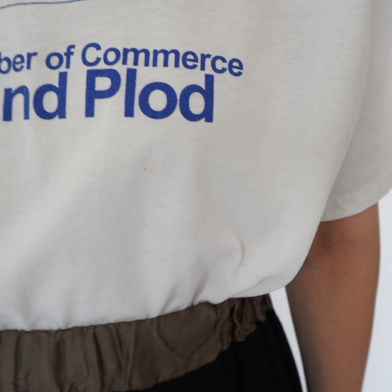 [ダメージの有無] 小さく目立ちにくい程度かと思いますが、フロント プリント近くに約5mmと2mm程度、生地が若干薄くなっている部分があります。プリント下に約1mm程度のシミあり(アップの画像をご確認ください)