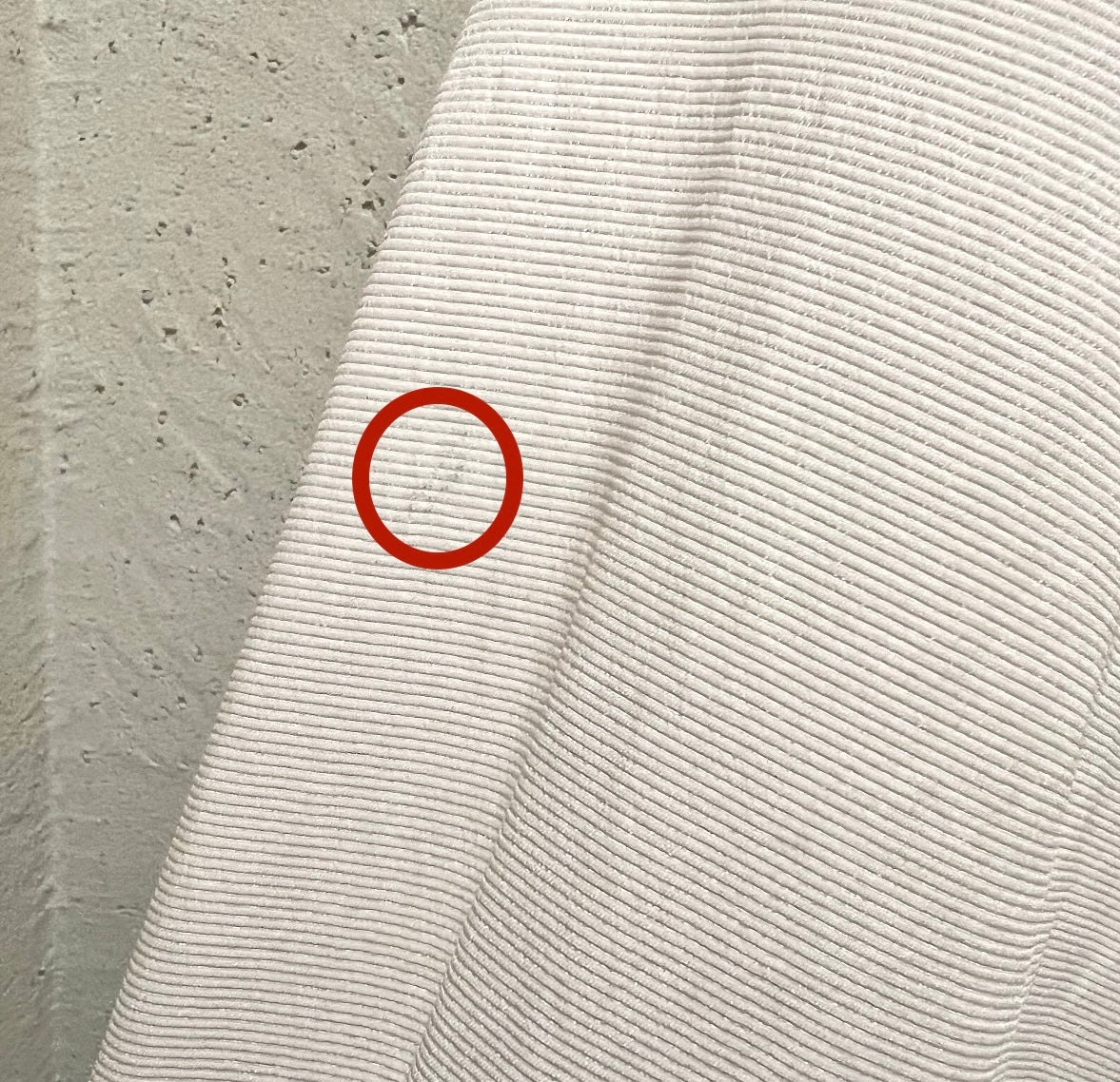 [ダメージの有無]大きなダメージはありませんが、右袖に約5mm程度、薄い黒っぽい跡があります。実物は気付きにくい程度かと思いますが、アップの画像をご確認ください。